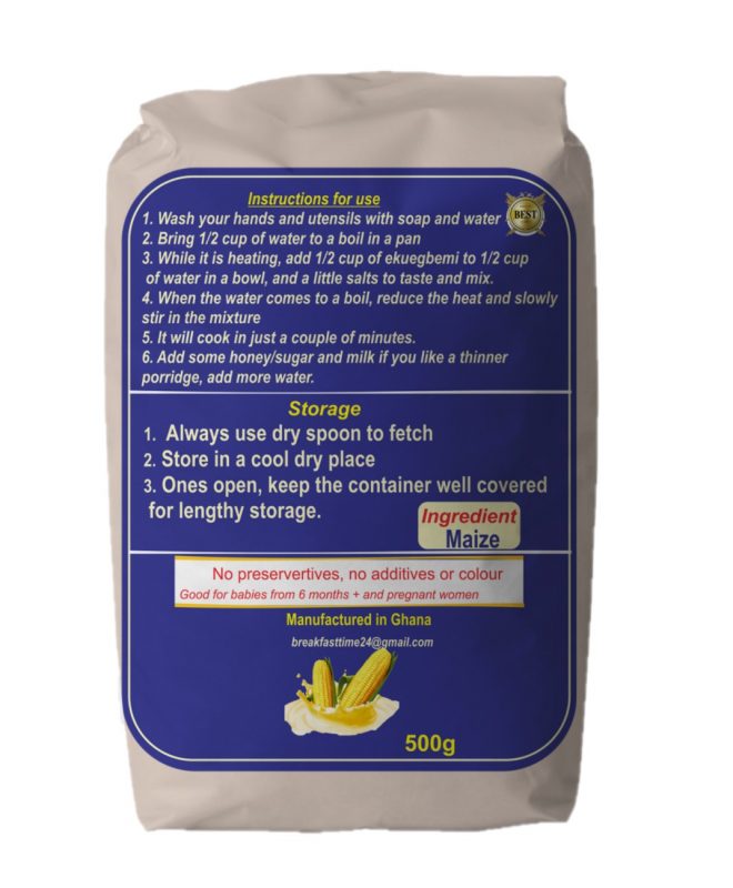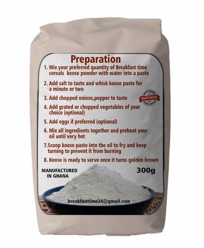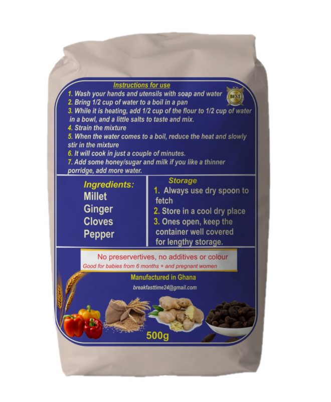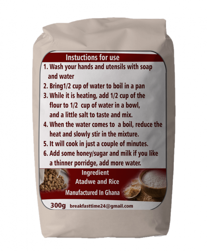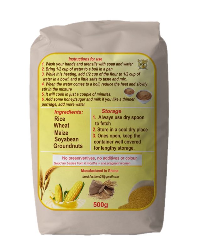 Breakfast time cereals and foods is a Ghanaian brand that uses natural ingredients planted and harvested in our home country which have high nutritional and bodybuilding ingredients to maintain and help the body grow and develop faster.